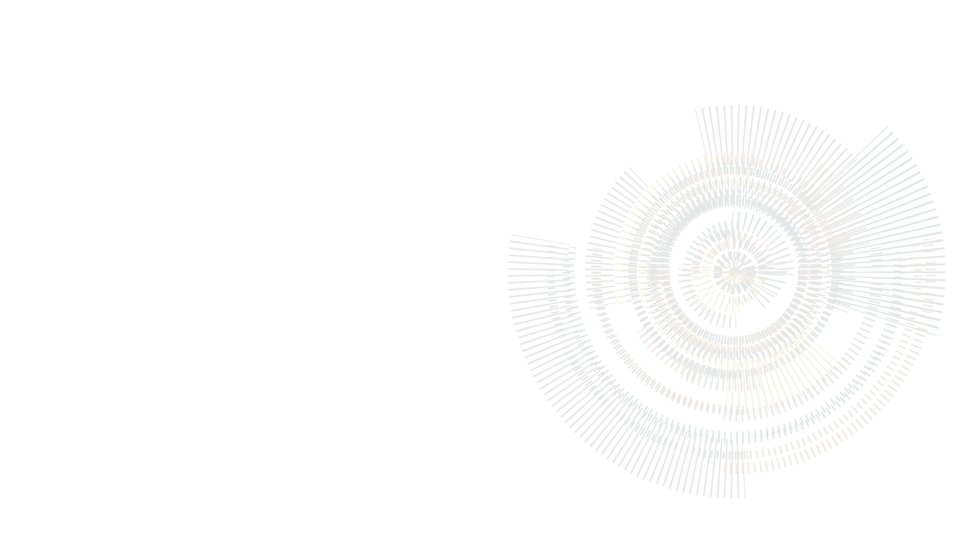 Abstract digital spiral with concentric circles and radiating lines in gold, white, and blue colors on a black background.
